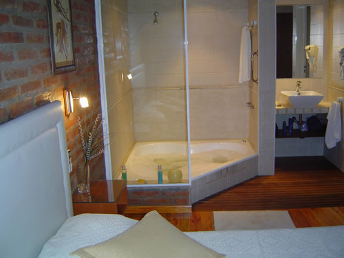 La cabaña para parejas, de una categoría superior para los más exigentes, es de dos ambientes y cuenta con living-cocina-comedor y amplio dormitorio con hidromasaje para 2 personas, baño en suite